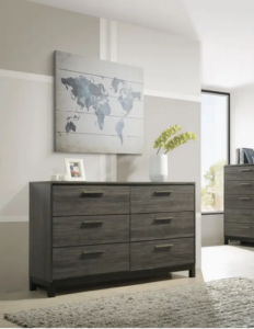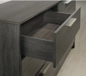 Ioana Antique Grey Finish Wood Bed Room Set King Size Bed Dresser Mirror Night Stand