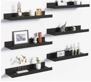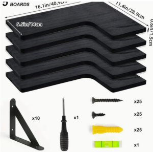 Modern Farmhouse Floating Shelves: Organize and style any room with this 6-piece Carbonized Black rustic oak shelving set. Featuring a durable wood construction, adjustable 20lb weight capacity, and versatile sizes (15.6×5.1 Inch), these wall-mounted shelves blend rugged charm with modern functionality. Perfect for displaying décor, plants, or essentials in bathrooms, kitchens, living rooms, or offices. Easy to install, timeless farmhouse design, and built to last. ✨ Upgrade your space with sturdy, stylish storage!
